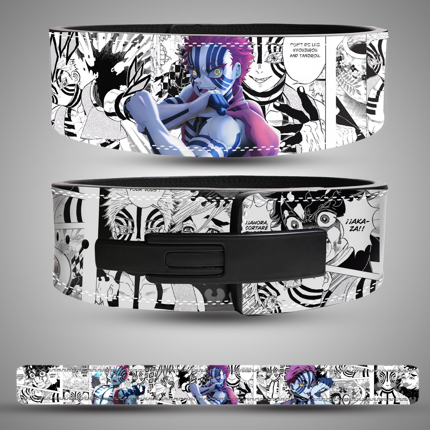This Akaza Leather Gym Belt is built for lifters who want solid support with a design that stands out. The belt is made from premium leather that holds firm during heavy squats, pulls, and presses. The surface features a full manga layout with Akaza artwork in sharp detail. The mix of bold color art and black-and-white manga panels creates a clean look that anime fans instantly recognize.