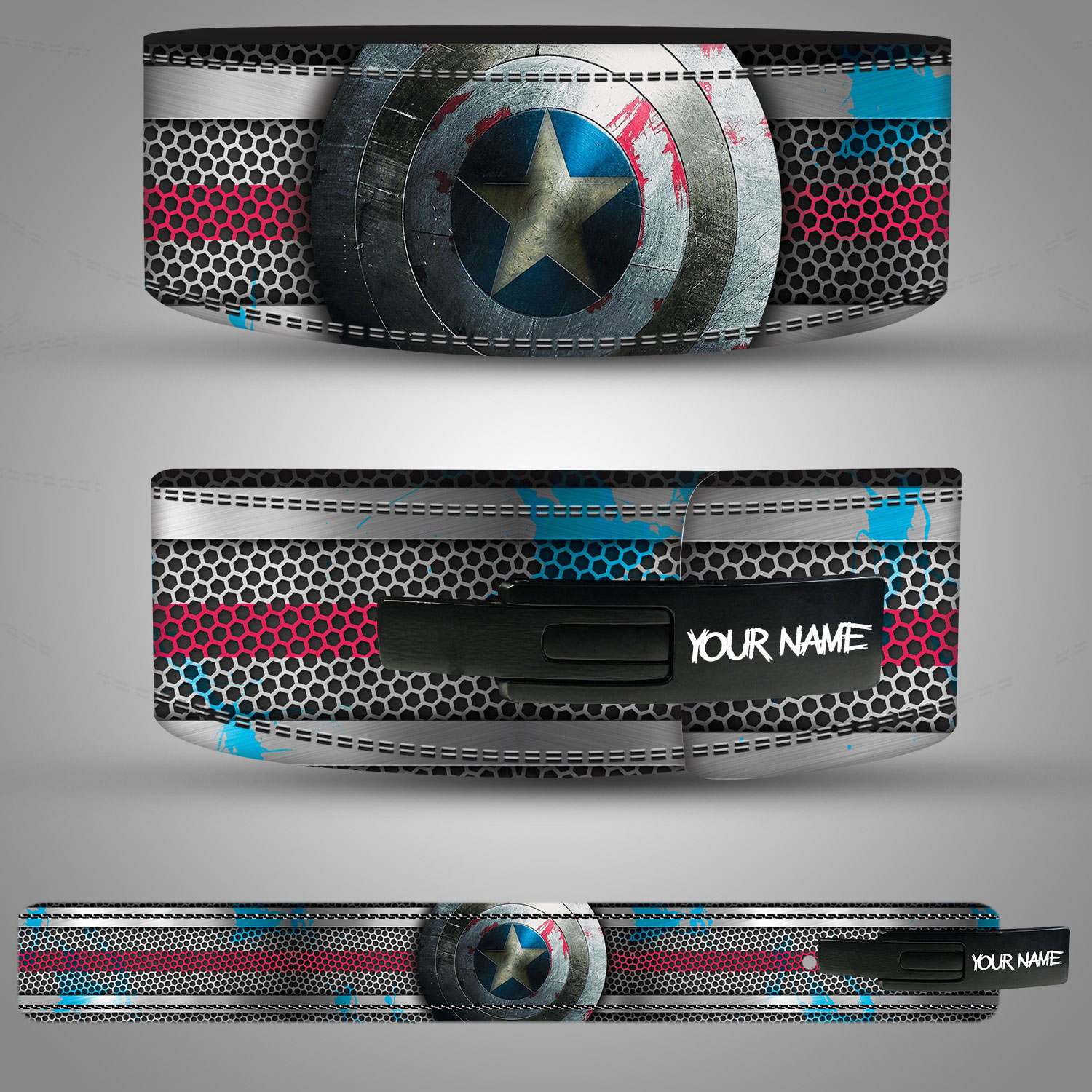 Train with the spirit of a hero using the American Hero Weightlifting Belt. Designed with a rugged metal-textured background and the iconic shield, this belt delivers secure back support and bold style for every workout.